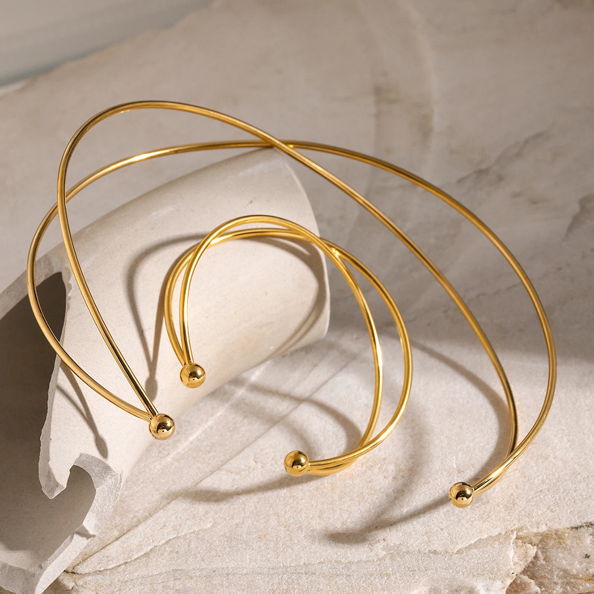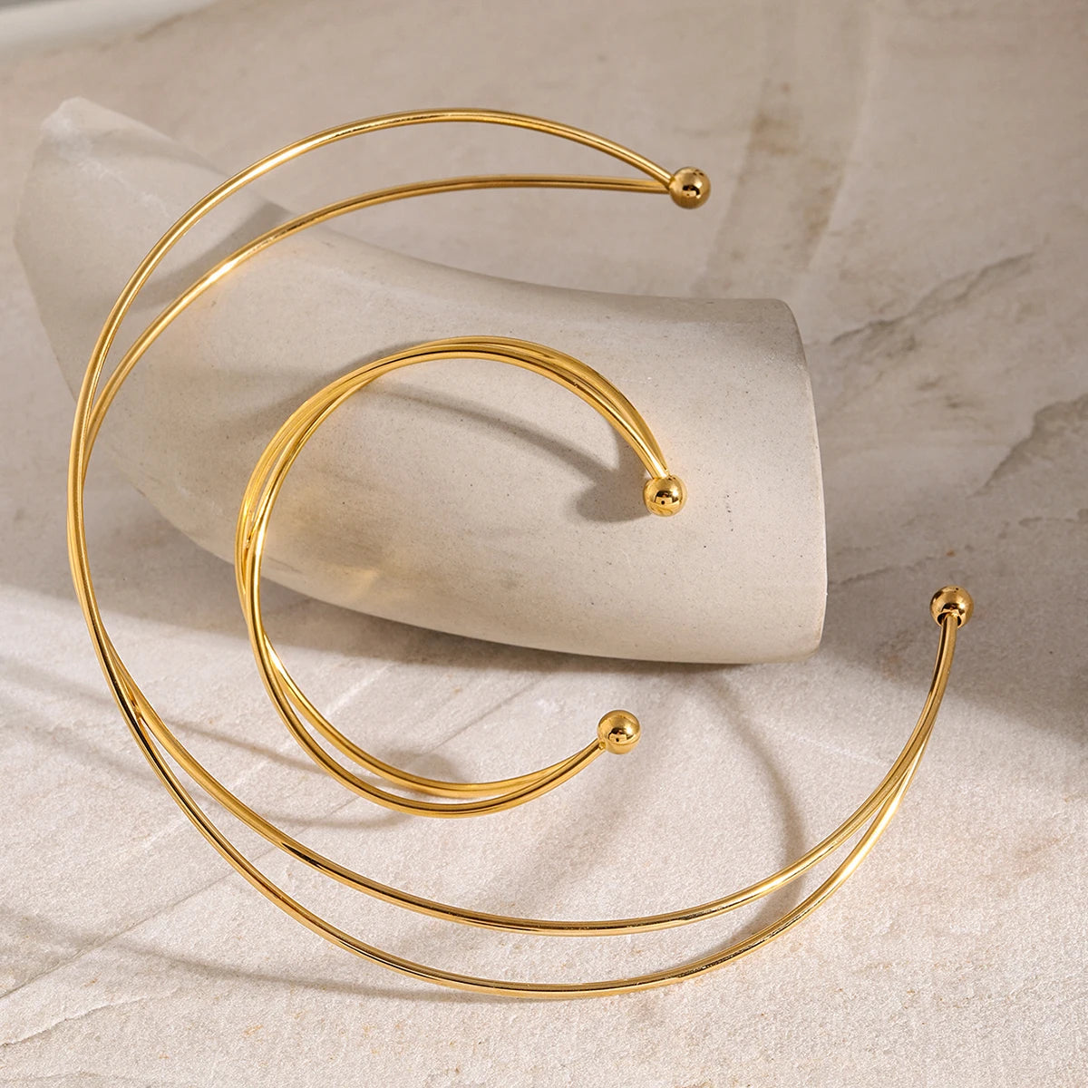 Jewelryposter Stainless Steel Minimalist Golden Line Cross Open Light Collar Necklace Stylish Tarnish Free Metal Jewelry Women